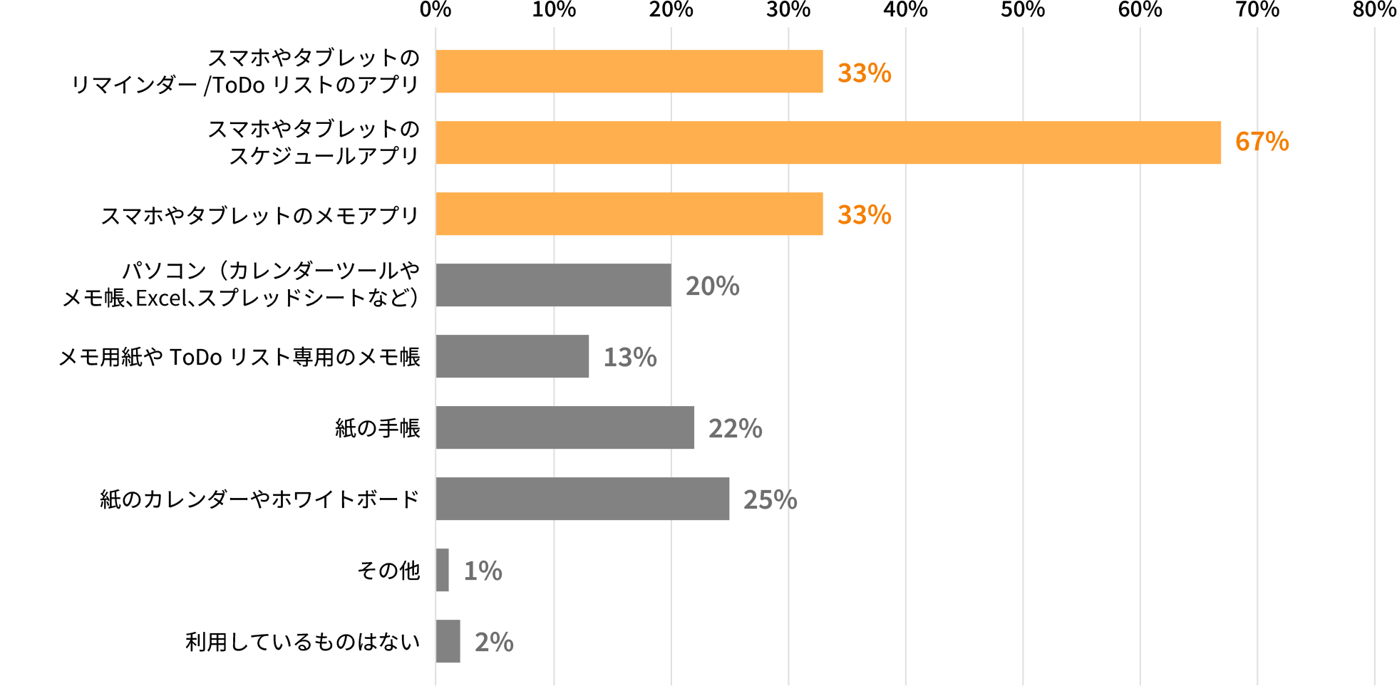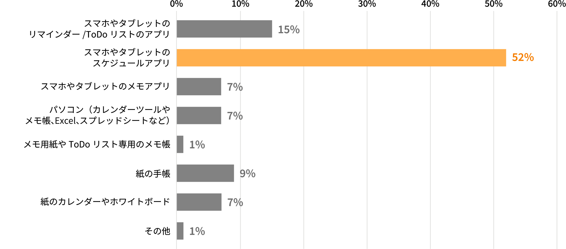 まずは、普段、プライベートでタスクやスケジュールを管理するために、どのようなツールを利用されているかお聞きしました。