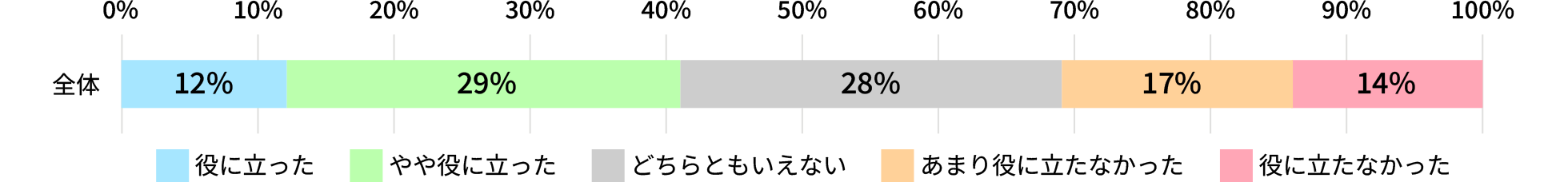 「役に立った」「やや役に立った」と回答したユーザーは41%で、一定の評価をいただきました。
