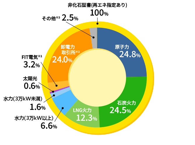 - ※2 この電気には、水力、火力、原子力、FIT電気、再生可能エネルギーなどが含まれます。