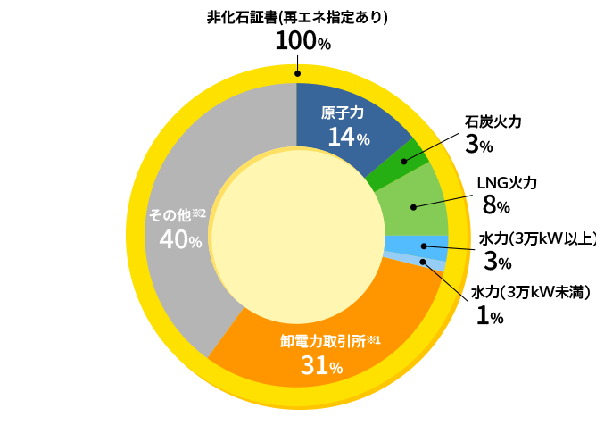- ※2 この電気には、他社から調達している電気の一部で発電所が特定できないもの等が含まれます。