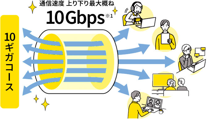 - ※1 通信速度はお客さま宅内に設置する弊社回線終端末から弊社設備までの間における技術規格上の最大値であり、ベストエフォート型サービスのため、実際の使用における一定の通信速度を保証するものではありません。