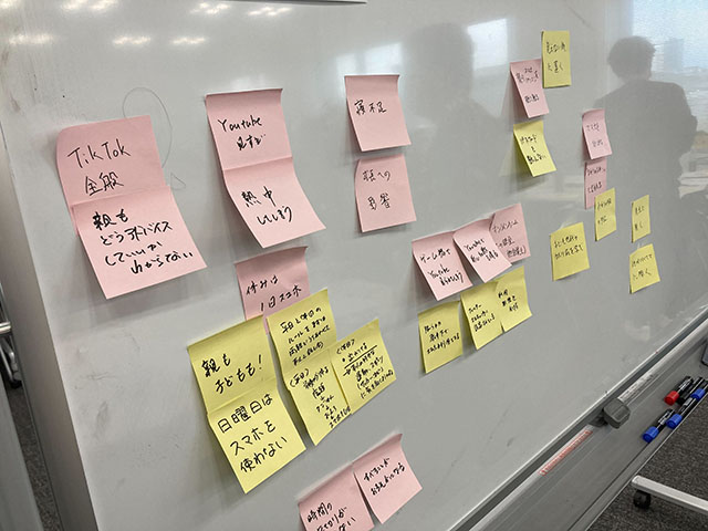 中高生を対象としたグループでは、「ルールは親子で一緒に話し合い、合意のもと策定する」など3つのルールができあがりました。