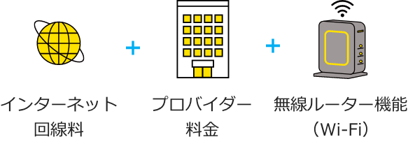 eo光ネット(type N)の料金は、インターネットを使うのに必要な「回線料」と「プロバイダー料金」に加え、「無線ルーター機能(Wi-Fi)」が一体になっている「安心」の月額料金です。